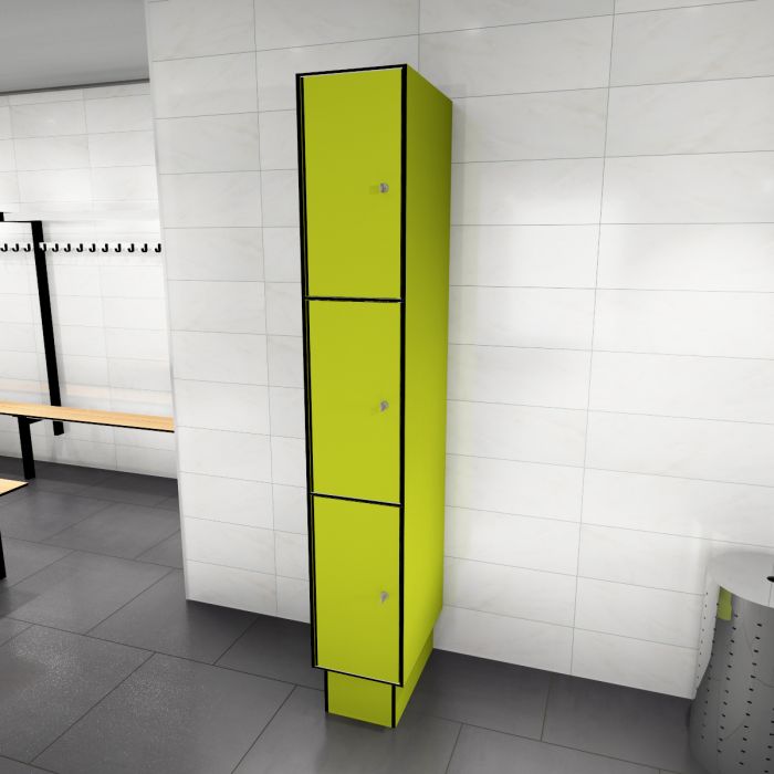 Wilt u graag een lockerkast met drie deuren boven elkaar van hoogwaardige kwaliteit? In dat geval adviseren wij u de Kupan locker 3TL-300. Deze locker beschikt namelijk over 1 kolom met 3 deuren boven elkaar (totaal 3-deuren) en is geschikt in vochtige ruimtes. De Kupan lockers worden compleet geassembleerd geleverd en zijn zelf eenvoudig te monteren. De 3TL-300 locker dient enkel op een onderstel geplaatst te worden. De Kupan lockerkasten hebben terugliggende deuren. Dit maakt de lockers inbraak werend. Daarnaast zorgen deze deuren voor een optisch fraai vlak front. De Kupan lockers kunnen geleverd worden met verschillende type sloten. Afhankelijk van het gekozen slot is de locker 3TL-300 binnen vijf werkdagen leverbaar.