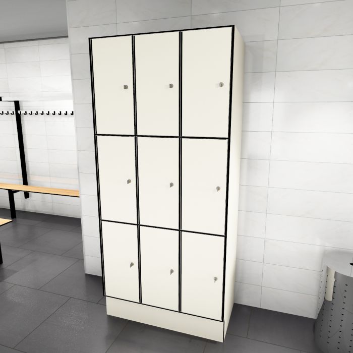 Wilt u graag een lockerkast met drie deuren boven elkaar van hoogwaardige kwaliteit? In dat geval adviseren wij u de Kupan locker 3TL-300. Deze locker beschikt namelijk over 3 kolommen met 3 deuren boven elkaar (totaal 9-deuren) en is geschikt in vochtige ruimtes. De Kupan lockers worden compleet geassembleerd geleverd en zijn zelf eenvoudig te monteren. De 3TL-300 locker dient enkel op een onderstel geplaatst te worden. De Kupan lockerkasten hebben terugliggende deuren. Dit maakt de lockers inbraak werend. Daarnaast zorgen deze deuren voor een optisch fraai vlak front. De Kupan lockers kunnen geleverd worden met verschillende type sloten. Afhankelijk van het gekozen slot is de locker 3TL-300 binnen vijf werkdagen leverbaar.