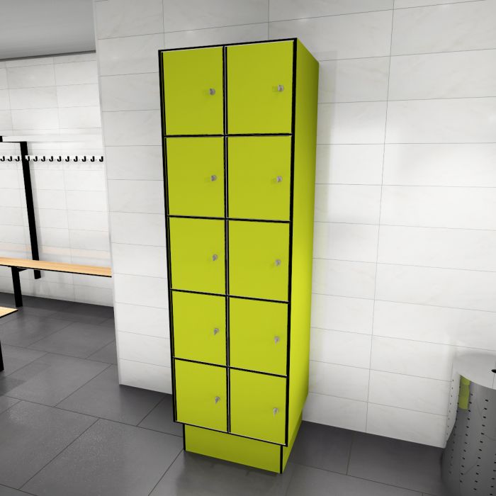 Deze locker beschikt namelijk over 2 kolommen met 5 deuren boven elkaar (totaal 10-deuren) en is geschikt in vochtige ruimtes. De Kupan lockers worden compleet geassembleerd geleverd en zijn zelf eenvoudig te monteren. De 5TL-300 locker dient enkel op een onderstel geplaatst te worden. De Kupan lockerkasten hebben terug liggende deuren. Dit maakt de lockers inbraak werend. Daarnaast zorgen deze deuren voor een optisch fraai vlak front. De Kupan lockers kunnen geleverd worden met verschillende type sloten. Afhankelijk van het gekozen slot is de lockers 5TL-300 binnen vijf werkdagen leverbaar.