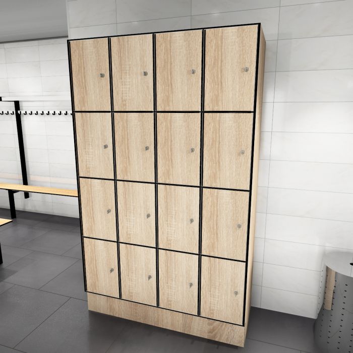 Deze locker beschikt namelijk over 4 kolommen met 4 deuren boven elkaar (totaal 16-deuren) en is geschikt in vochtige ruimtes. De Kupan lockers worden compleet geassembleerd geleverd en zijn zelf eenvoudig te monteren. De 4TL-300 locker dient enkel op een onderstel geplaatst te worden. De Kupan lockerkasten hebben terugliggende deuren. Dit maakt de lockers inbraak werend. Daarnaast zorgen deze deuren voor een optisch fraai vlak front. De Kupan lockers kunnen geleverd worden met verschillende type sloten. Afhankelijk van het gekozen slot is de locker 4TL-300 binnen vijf werkdagen leverbaar.