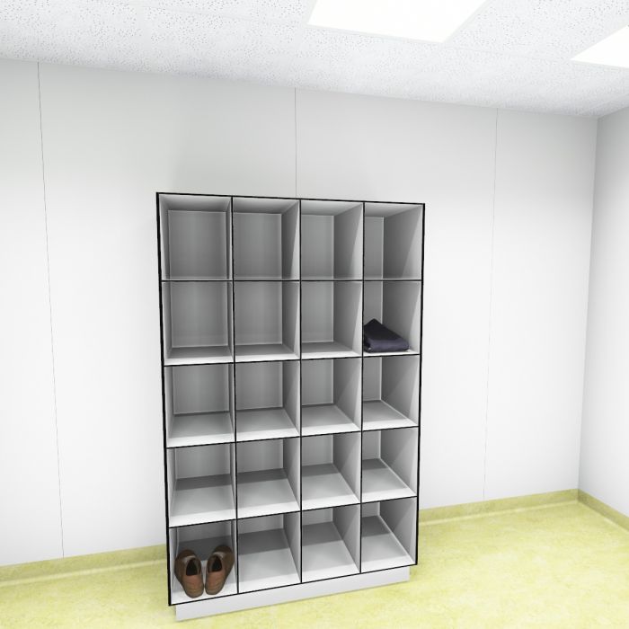 De open vakken kasten worden volledig van High Pressure Laminate (HPL) gemaakt. Dit zorgt niet alleen voor een hele stevige oplossing, maar ook één die hygiënisch van zeer hoge kwaliteit is. De kasten zijn waterbestendig, hufterproof en niet krasgevoelig.