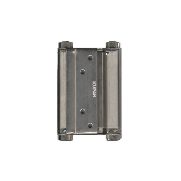 Bommer veerscharnier, RVS-304 Veerscharnier voor lichte klapdeuren. Door middel van een stelschroef is de spanning op de deur in te stellen. Speciaal voor de Kupan P-deur met een dikte van 41 mm.